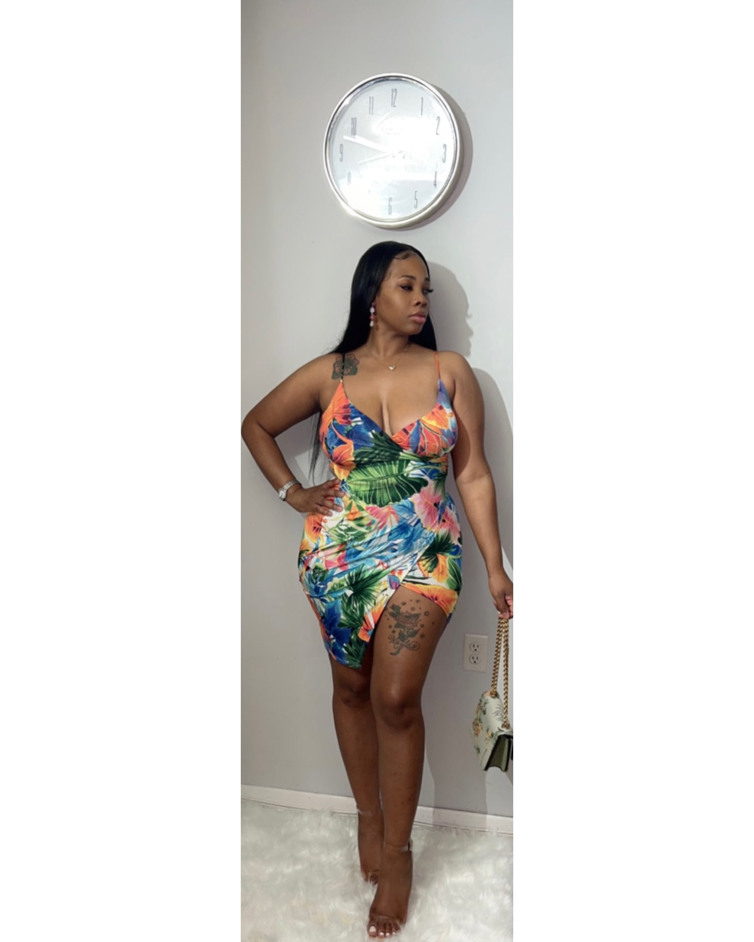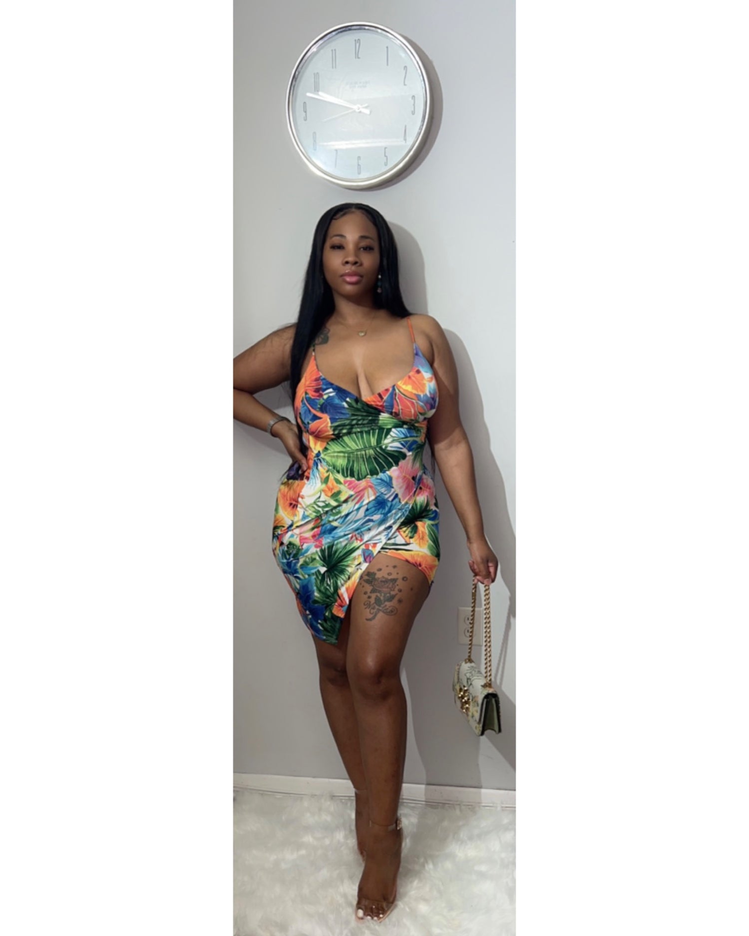 Our Floral Baddie, dress is the newest addition to our site. This classy piece is perfect for brunch with the ladies, or a quick picnic date. Whatever the occasion is, be a baddie in this look. Pair with your favorite heels and sunglasses to complete the look.